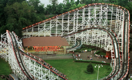 The Thunderbolt was remodeled from the Pippin, which was built in 1924, in 1968. This coaster has a wooden track length of 3,250 feet, and a duration of a minute and 40 seconds. The height of the coaster is 70 feet, with a 90-foot drop, which is impressive for such an old wooden coaster. While riding this coaster, the car reaches maximum speeds of 55 miles per hour.