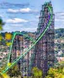 The steel coaster Phantom’s Revenge originally opened in 1991 as the Steel Phantom, built by Arrow Dynamics. The Steel Phantom was 160 feet tall, with a record-breaking drop at 160 feet. Its top speed was 80 miles per hour and had a track length of 4,750 feet of track. The Steel Phantom originally had four inversions, all of which were removed when the coaster was rebuilt in 2001 by D.H. Morgan Manufacturing. The Phantom’s Revenge now has a total height of about 228 feet, a maximum speed of 85 miles per hour, making it the fastest in Pennsylvania, and just under 5,110 feet of track length, all of which are better than the Steel Phantom.